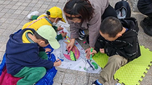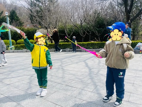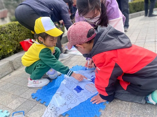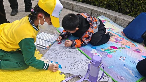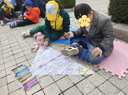 活动伊始,由服务中心的老师给孩子们讲解了四季变化,引出今天的主题,随后小朋友们两两结对,开启了风筝绘画之旅。每一组搭档都配合默契,小小的脑袋凑在一起,热烈地讨论着绘画的构思。画笔在风筝上轻快游走,不一会儿,原本素净的风筝便被五彩斑斓的色彩填满,每一只风筝都承载着孩子们独特的想象力与纯真的童心。