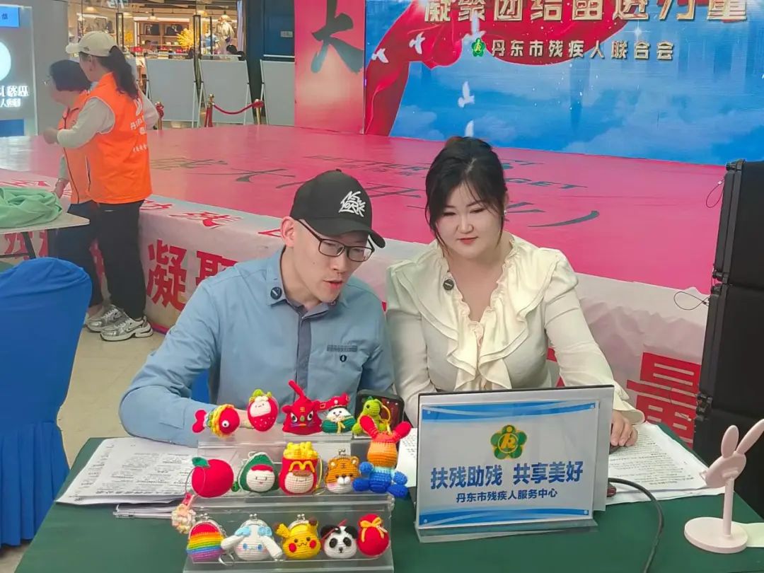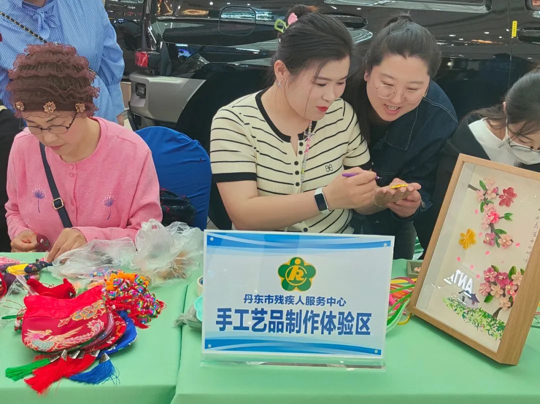 展出80余种残疾人手工艺品,布艺达人于姐现场缝制布老虎,剪纸小能手小翔以丹东地标为灵感创作文创包,观众既能体验非遗制作,还能通过直播间下单,真正让“指尖艺术”转化为残疾人的“增收利器”。