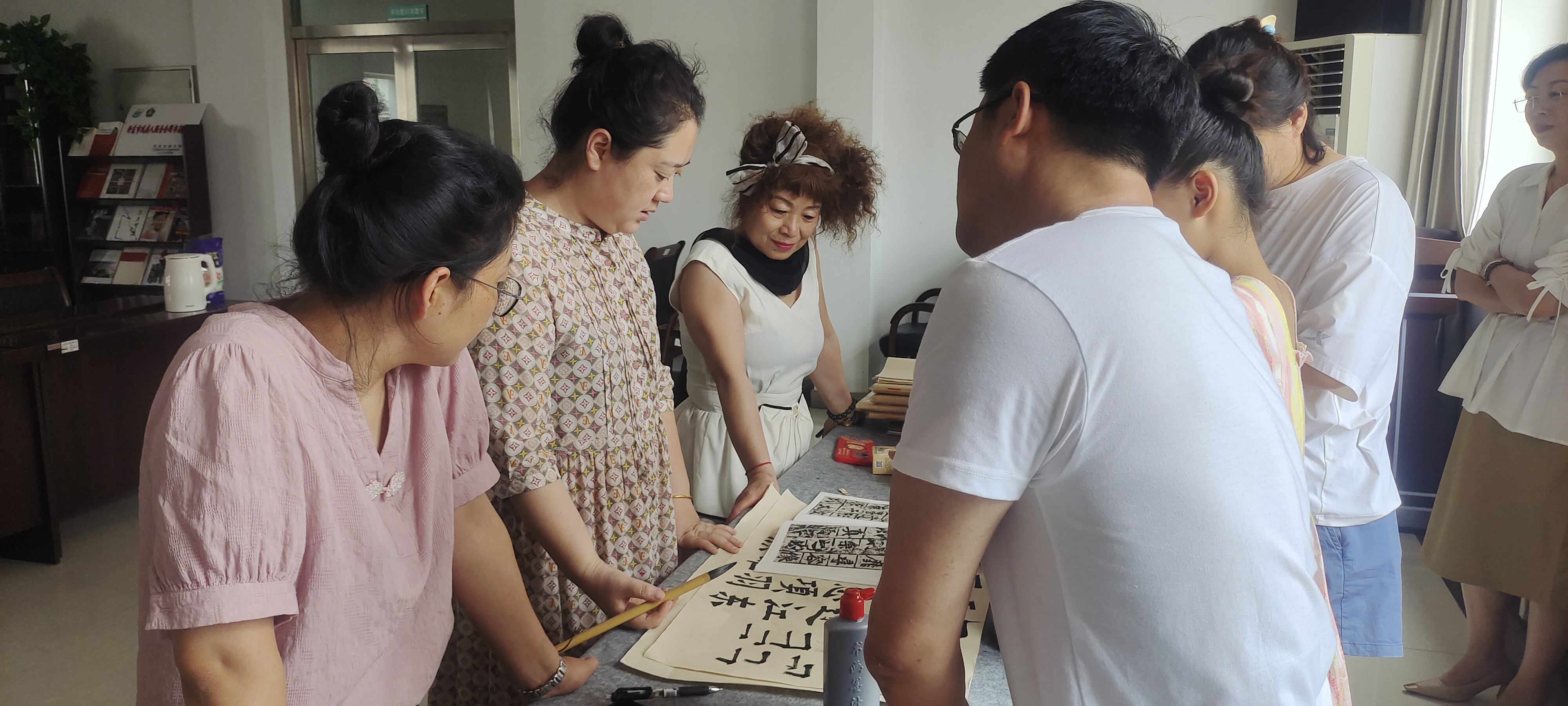 交流会上,大家围坐在一起,或静心临摹,或相互探讨笔法技巧。没有书法基础的朋友在有经验者的耐心指导下,慢慢掌握了握笔、运笔的基本要领,一笔一画地在纸上书写;有基础的朋友则尽情挥洒,展示着自己的书法功底,一幅幅作品或刚劲有力,或娟秀柔美,充满了艺术气息。
