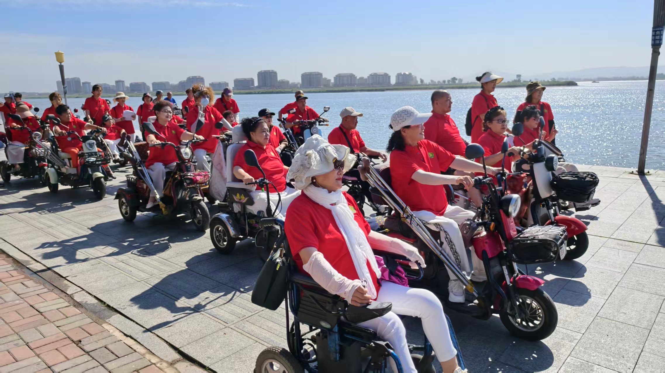 上午,参与者们身着火红衣衫、手持国旗,从玫瑰广场出发至断桥。行进中,大家相互扶持、稳步向前,既展现了肢体残疾人突破自我的坚韧,也践行了残疾人健身周“康复体育、活力生活”的理念,让运动成为康复与成长的助力。