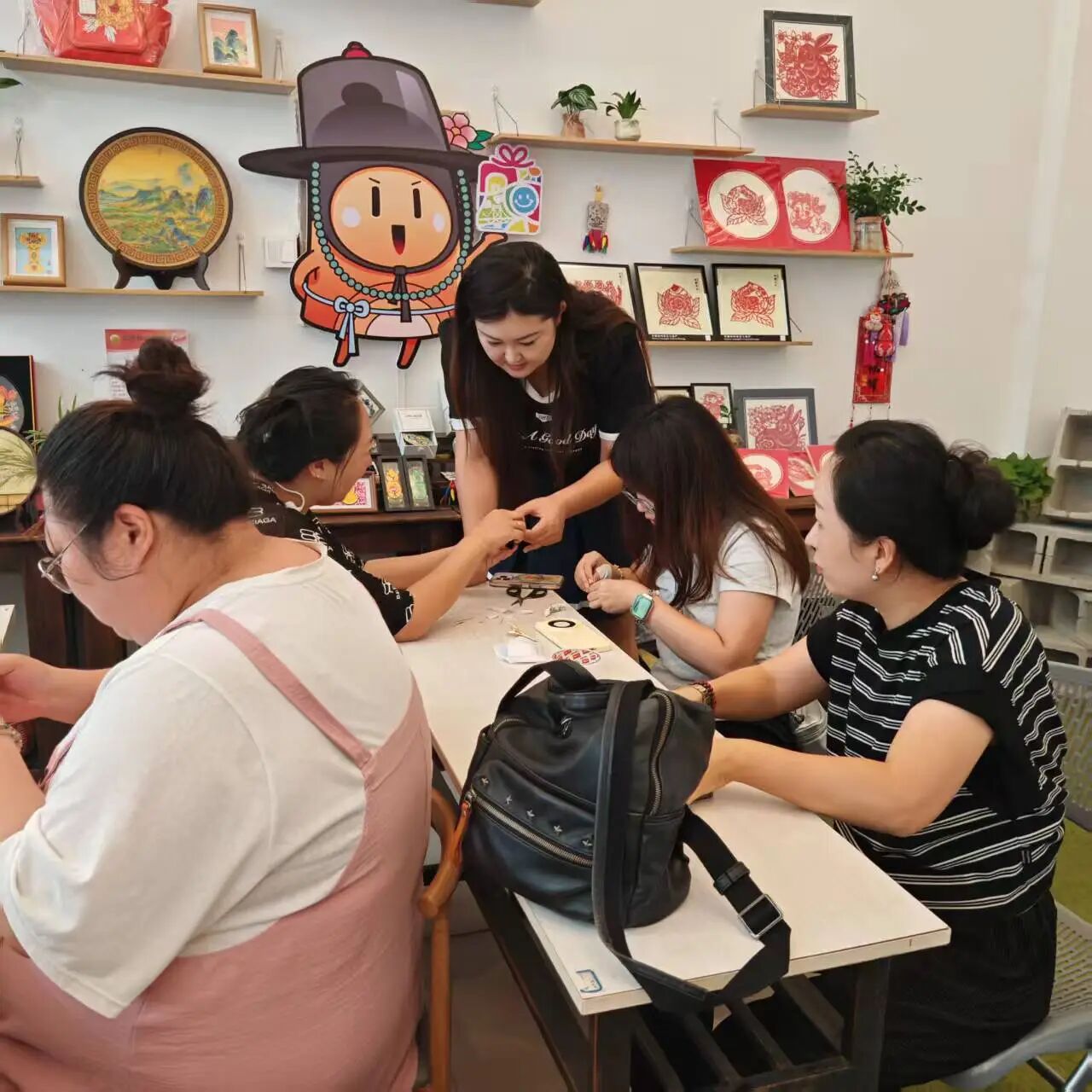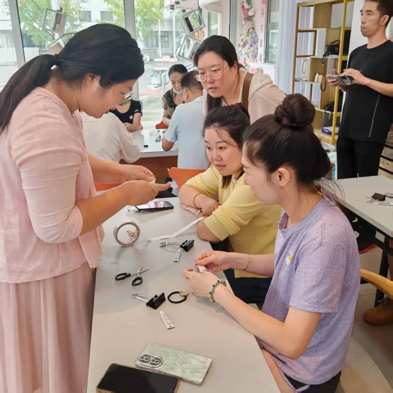 本次培训选址于边疆特产销全国展销中心,课程设置聚焦市场需求与非遗技艺传承,涵盖四大核心非遗项目。“非遗宋锦” 培训系统讲解织造工艺、纹样设计逻辑,结合丹东地域特色,引导学员探索宋锦在文创产品中的创新应用,学员制作宋锦银杏叶发簪、耳环、挂饰、胸针等产品;“非遗掐丝珐琅” 培训从掐丝、点蓝、烧制等核心工序入手,注重技艺实用性转化,助力学员掌握其在小型文创摆件、装饰挂件中的创作技巧;“非遗点翠”培训围绕传统技艺改良与环保材料运用,“非遗螺钿” 培训则讲解侧重切割、镶嵌工艺,实操过程中学员创作螺钿装饰画、螺钿镶嵌胸针、发饰、螺钿工艺书签等实用价值的文创产品,让螺钿这一传统工艺在现代文创中焕发新活力。