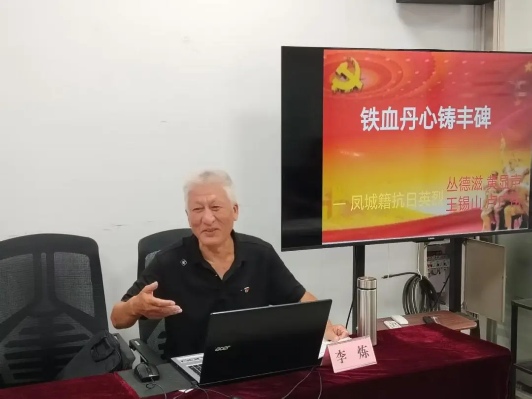 宣讲过程中,李炼同志紧扣“铁血丹心铸丰碑”核心主题,将丛德滋、黄显声、王锡山、卢广伟等凤城抗日英雄的事迹娓娓道来。他并非简单罗列历史事件,而是通过细节化的讲述,让英雄们的形象跃然眼前——从战火纷飞中坚守信念的抉择,到面对强敌时挺身而出的果敢,每一个故事都饱含着震撼人心的力量。