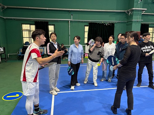 活动特别邀请了专业匹克球教练,以通俗易懂的方式为肢残人朋友详细讲解匹克球规则与技巧。教练从纠正基础握拍姿势,到亲身示范发球动作要领,再到演示击球角度和力度把控。讲解过程中,他穿梭于场地之间,为参与者提供一对一进行指导,尽可能让每位参与者都能初步掌握匹克球的运动要领。教练耐心、专业地指导,让肢残人朋友对匹克球这项运动有了更深入的认识和理解,也极大地激发了大家的学习热情。